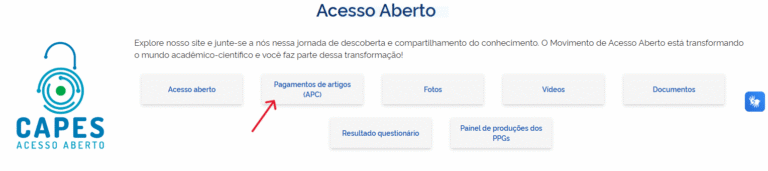 Role a página até a seção “Acesso Aberto” e escolha a opção “Pagamentos de artigos (APC)“