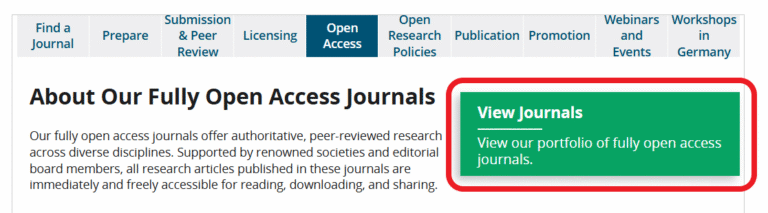 - na página, “About our fully open access journals“, clique no ícone verde “View journals” (Figura 1);