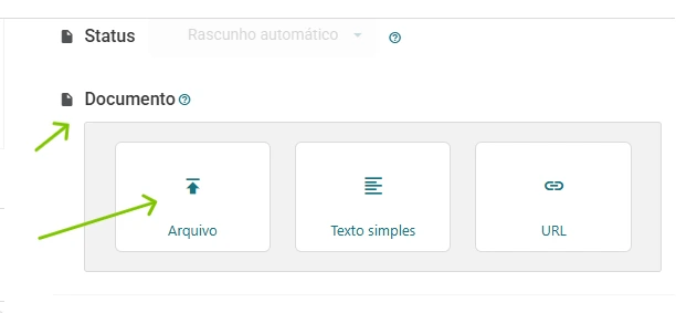 - Envio do documento: na seção “Documento”, clique em “Arquivo” e envie/submeta o arquivo principal que está sendo descrito (Figura 01);